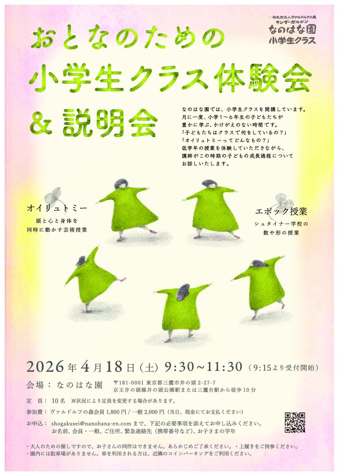 お申込: shogakusei@nanohana-en.com まで、下記の必要事項を添えてお申し込みください。